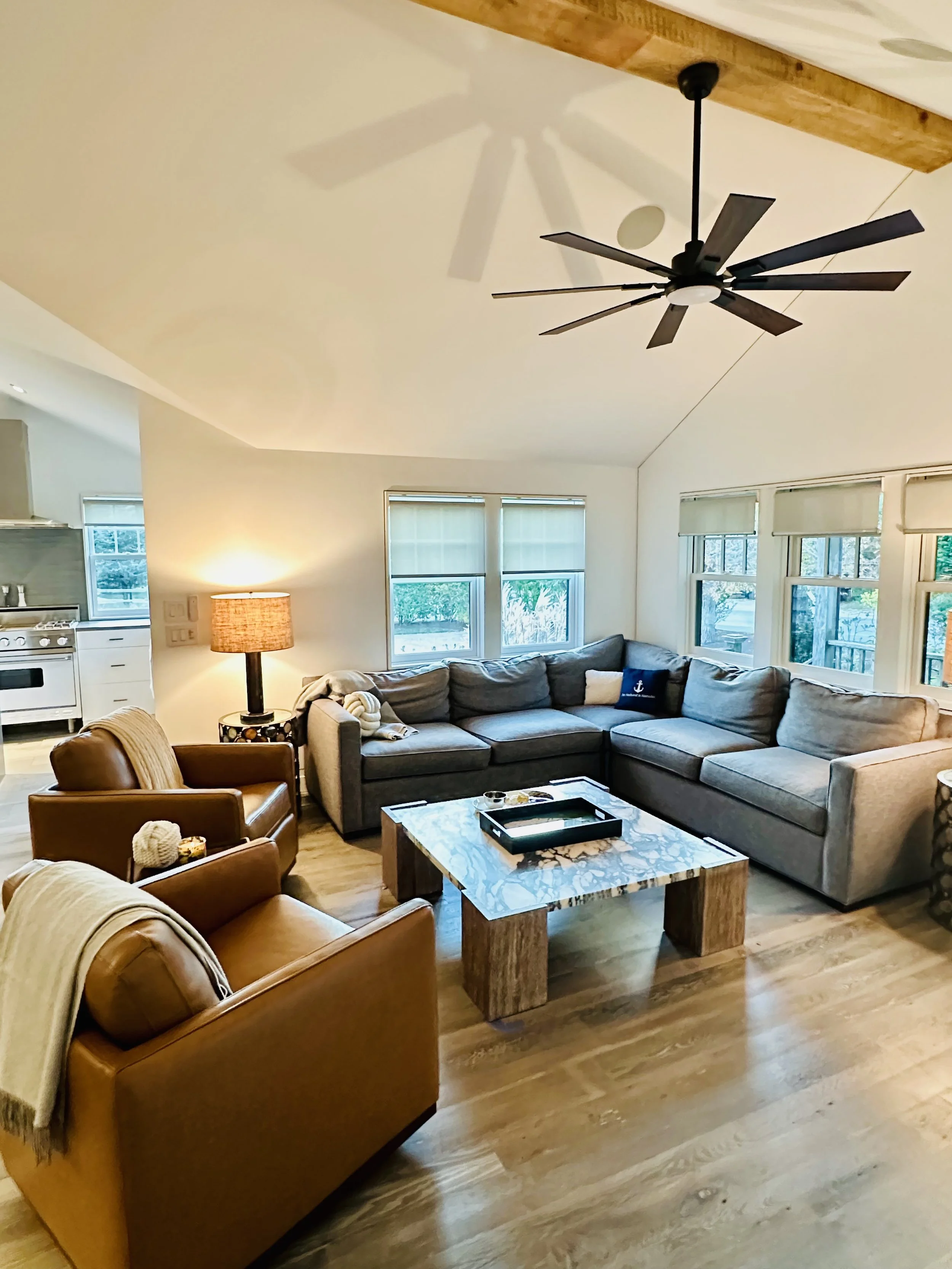 The décor blends upscale coastal design with comfort—think curated art, plush furnishings, and natural light in every room.